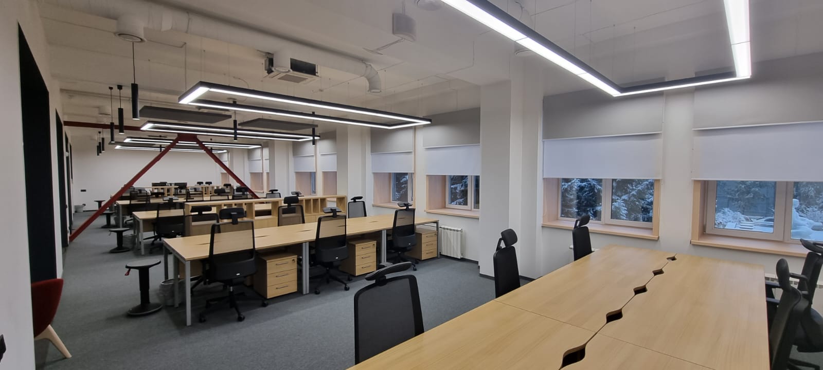 Downlights LTD-EXPLORER, LTD-LEGEND with daylight shade of 4000 K, which is optimal for creating a cheerful working atmosphere, are also used for the main lighting in other rooms of the office. LGD-2TR tracks and LGD-GERA track luminaires helped to add accents in the right places. Controlling accent and localized lighting with track systems is extremely convenient. The luminaires are easy to mount and move along the track, so they allow you to change lighting scenarios quite quickly and flexibly. This is why track lighting is so popular when creating office lighting.