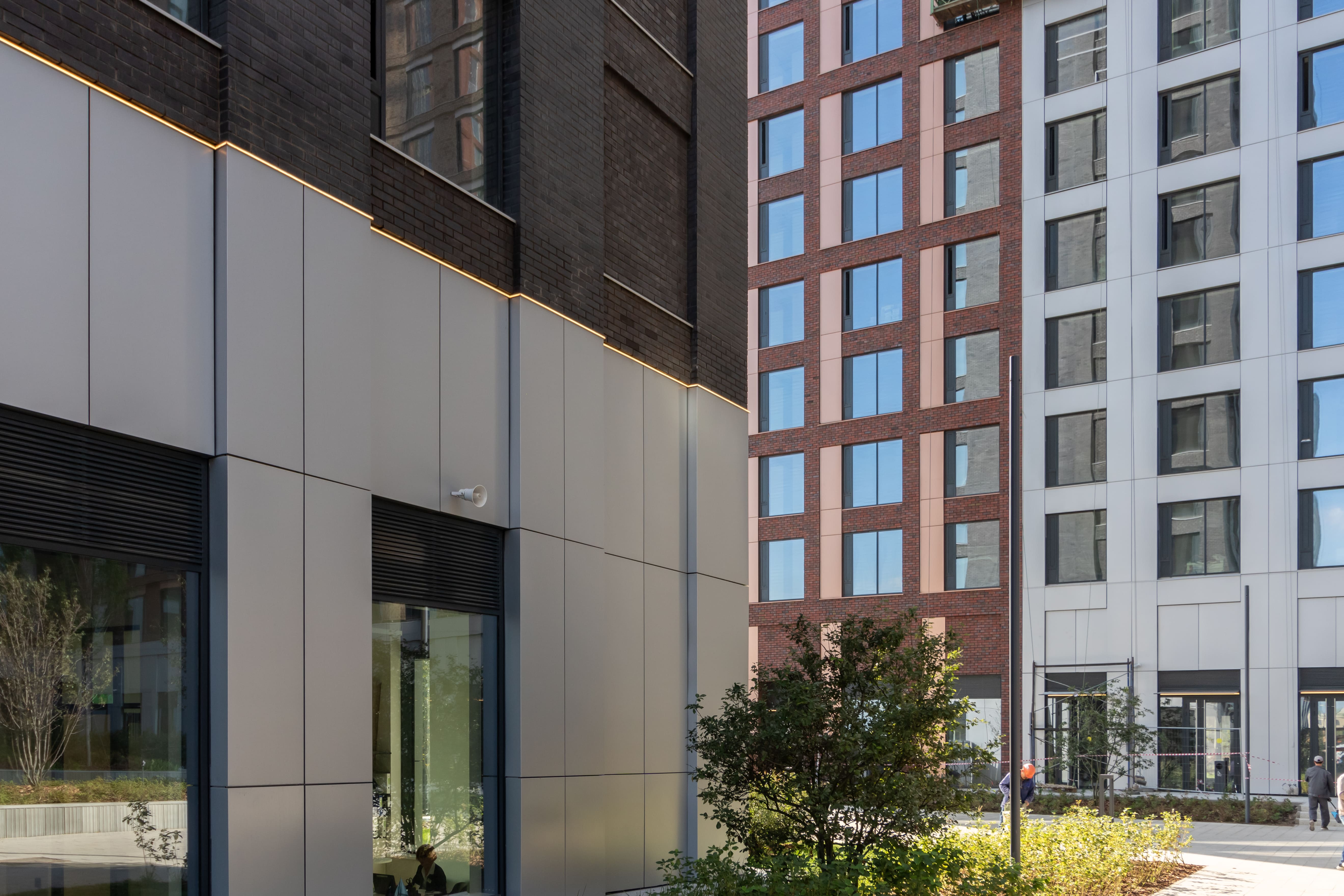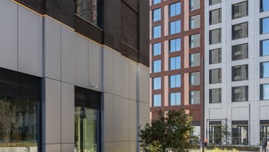 A special feature of the City Bay lobby lighting is the biodynamic lighting system. In eight buildings, light control is automated according to natural biorhythms. In the morning, with sunrise, the overhead lights are switched on at 100% brightness and the backlighting at 30%, and in the evening, on the contrary, the ceiling lights are reduced to 30% brightness and the backlighting behind the eaves reaches 100% brightness. If necessary, control can also be carried out in manual mode. For this purpose, the lobbies are equipped with DALI wall panels.