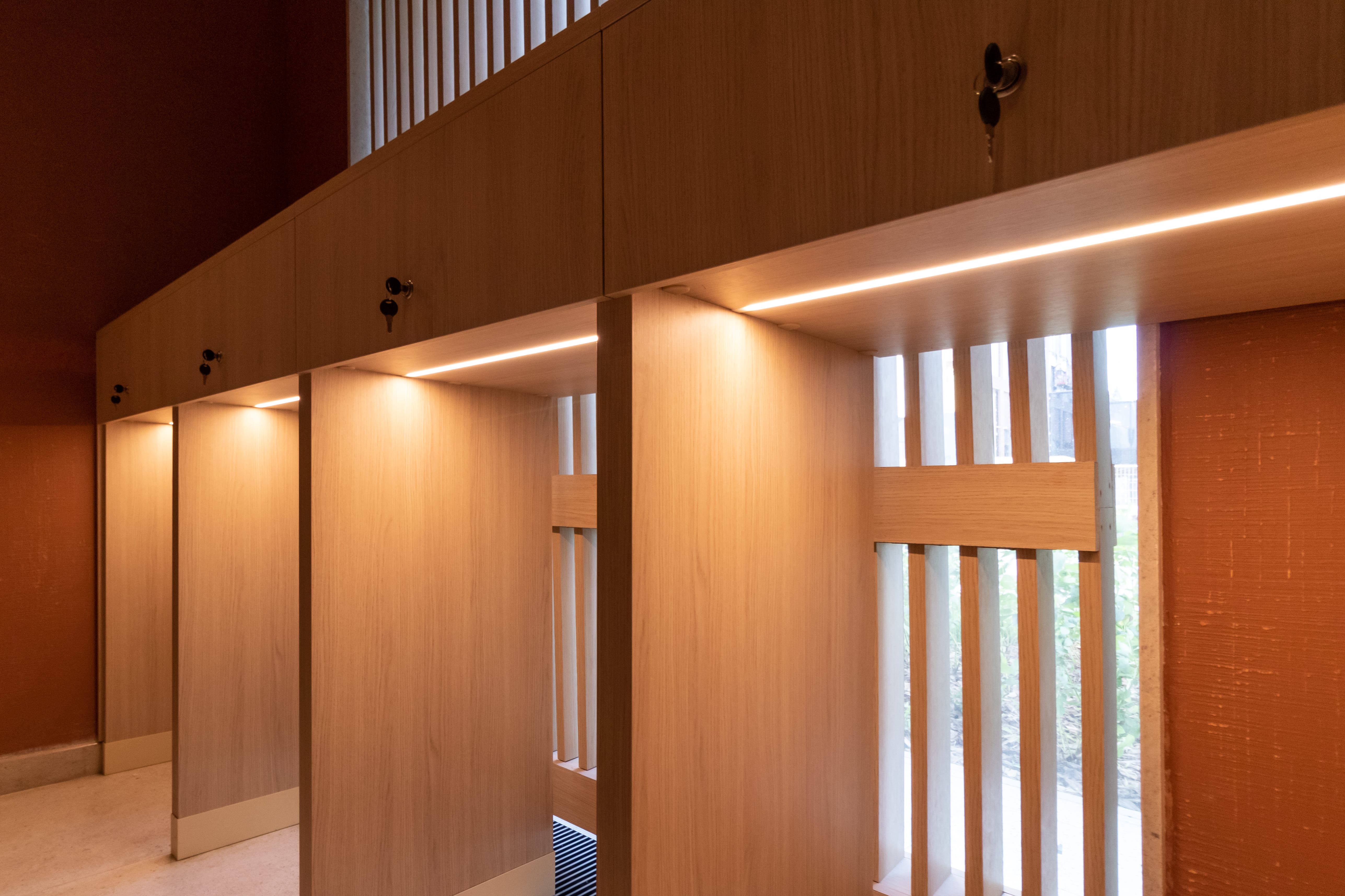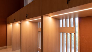 For overhead lighting, ATLAS spot recessed luminaires are used, creating a comfortable and delicate lighting environment due to their low discomfort index (UGR<16) and small angle of light (35°).