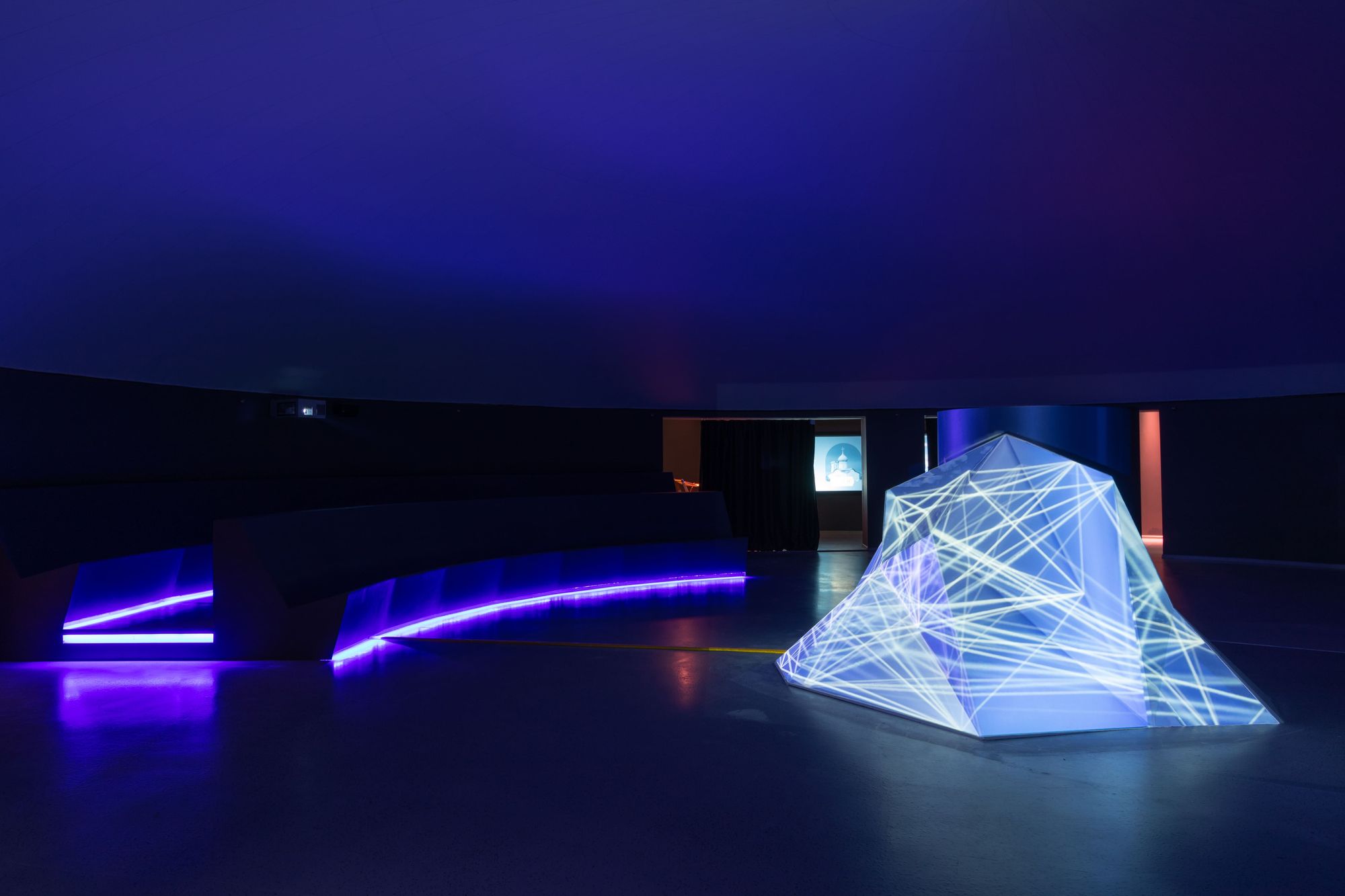 An interactive exhibition implies active participation of visitors who can interact with the exposition. Therefore, much attention was paid to the creation of an intelligent light control system. Lighting automation was achieved by using touch monitors, SR2-Door infrared door sensors, and LN series dimmers.