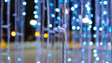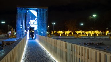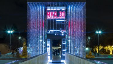 The art object resembles an endless light corridor with a 3D effect. For the street design were chosen garlands with a high degree of dust and moisture protection IP65. They can easily withstand extreme winter weather conditions without loss of luminescence quality.