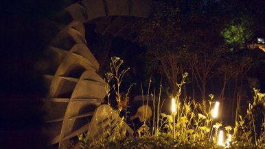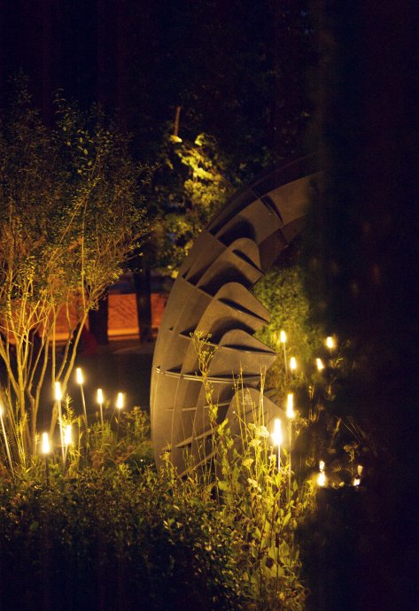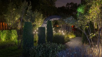 In the lighting design of the garden used LED products brand Arlight: landscape lights CANNA, which perfectly fit in with the concept, LED spotlights RAY-ZOOM to illuminate greenery, unique lights STRIPE for contour lighting of the arch and other equipment that helped to create this unique fairy-tale atmosphere.