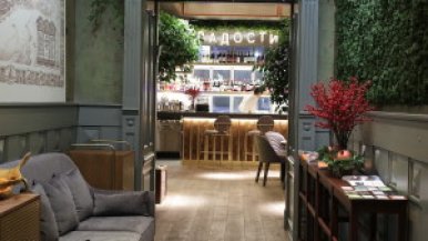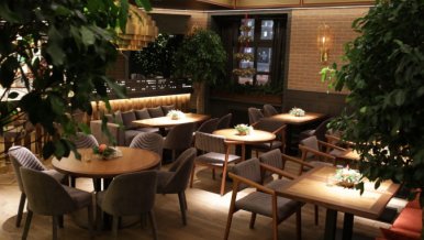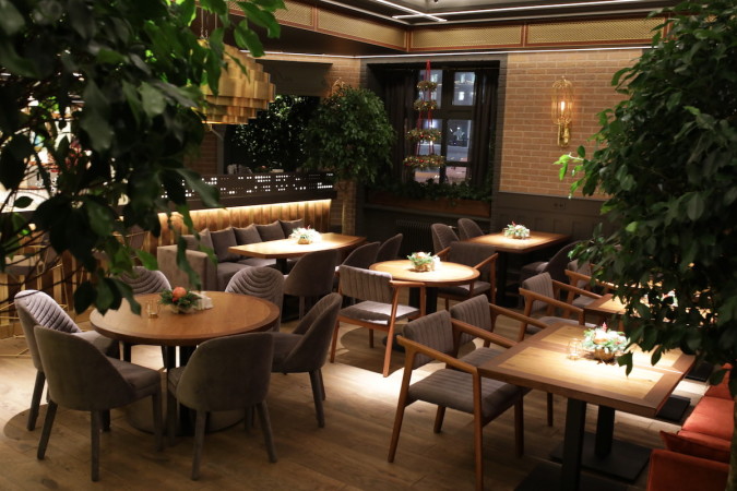 Lighting in the halls of restaurants plays one of the leading roles in creating the appropriate atmosphere. Along with traditional lamps and sconces, in the interiors of the restaurant presented here are widely used light strips made on the basis of aluminum profile and LED tape.