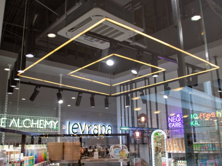 An important selection criterion was the quality of light. For the correct display of the color range of cosmetic products, it is important to pay attention to such an indicator as CRI - color rendering index. GELIOS luminaires have CRI>90, creating a light space close to natural.