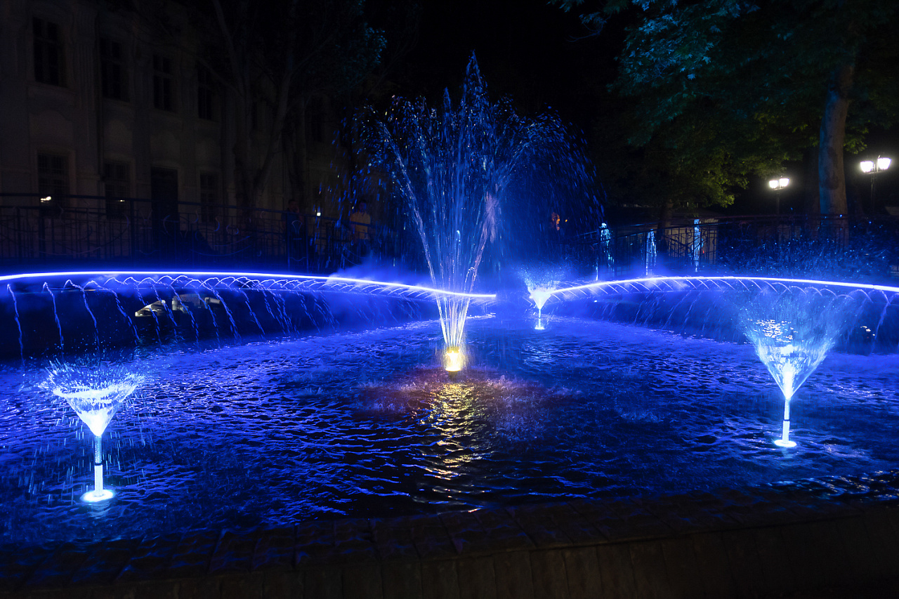 The composition of musical fountains in Evpatoria is equipped with multicolor LED lighting, which is synchronized with the musical accompaniment. Bright extravaganza show lasts without limiting the duration and number of musical pieces.