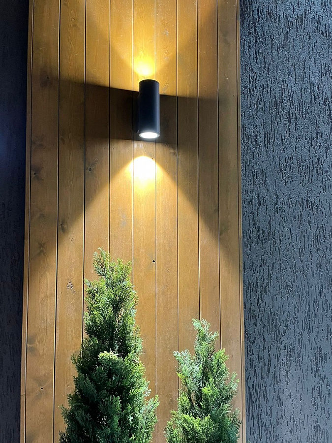 Outdoor lighting is made with flexible neon. Sealed neon shell allows you to use it in difficult camping conditions and at the same time is an excellent diffuser, providing a soft glow. On the facades are mounted luminaires with bilateral light distribution, creating an interesting light and shadow pattern.
