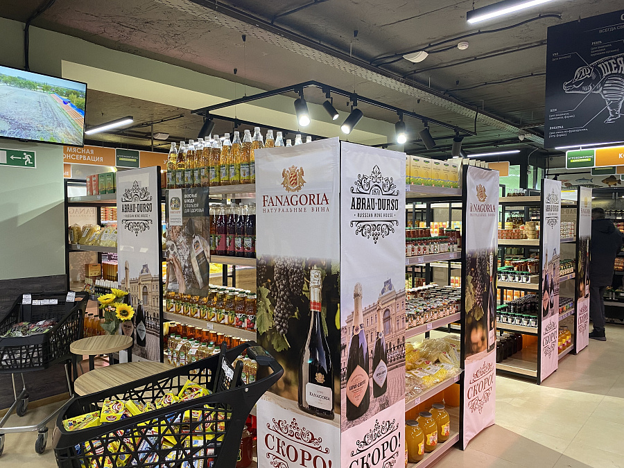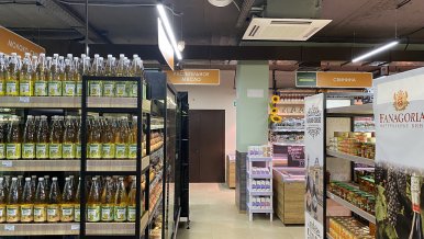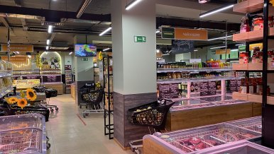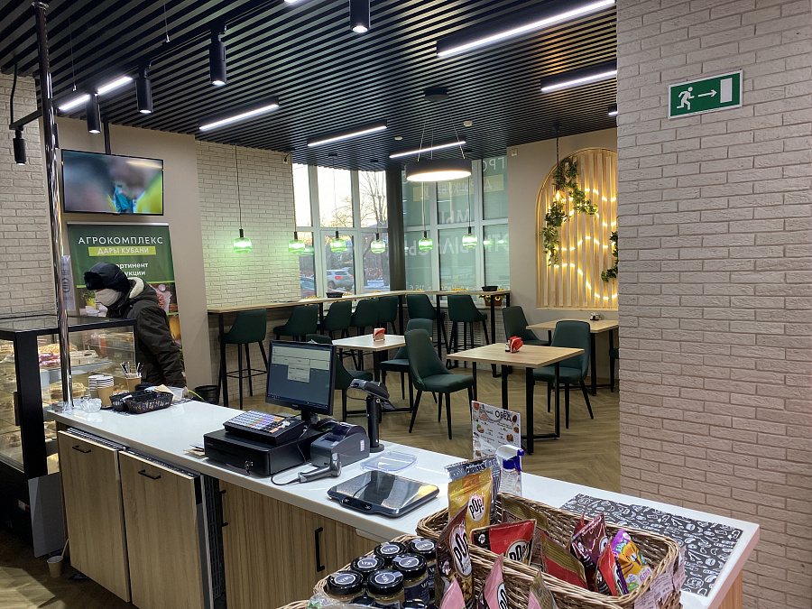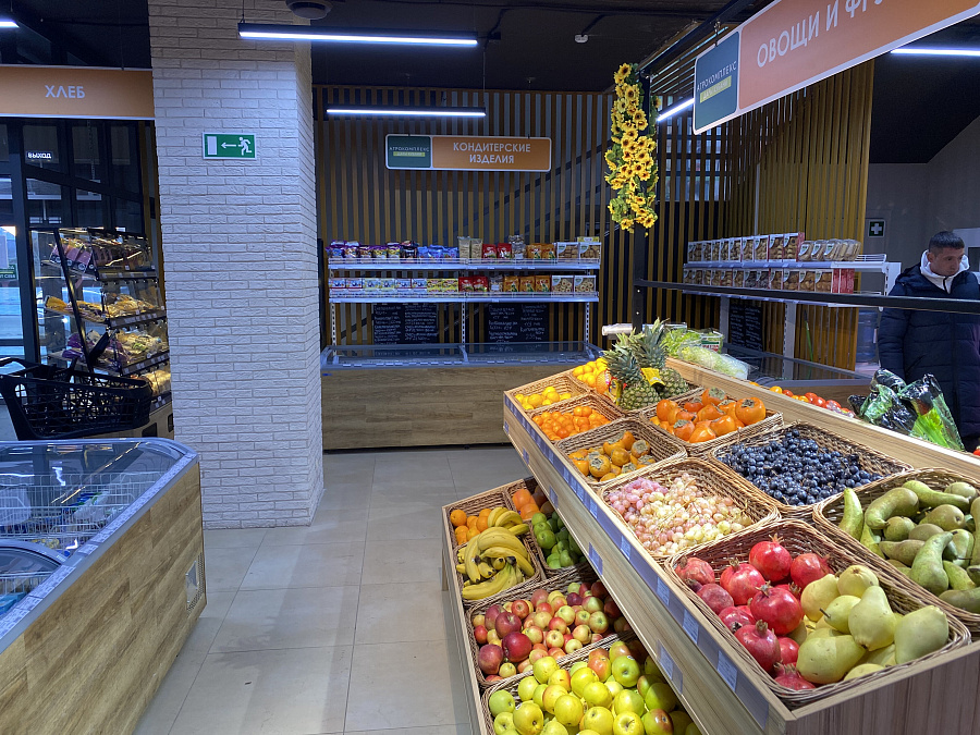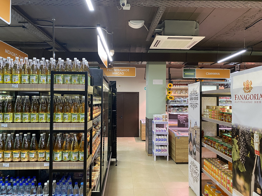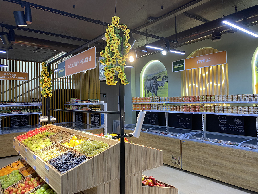 Product illumination is an important factor that influences buying behavior. To illuminate products in the agricultural complex were used specialized lighting fixtures series FOOD SHOP. Their peculiarity is that for each product group a special spectrum of luminescence has been developed, which makes the product as attractive as possible for customers. Warm shade of glow will emphasize the golden color of baked goods, cold shades - for white fish and greens, pink glow makes the color of fresh meat saturated. For red fruits and vegetables and greens - their own special shades that emphasize juiciness and freshness. For the general illumination of showcases used LED tape Arlight.