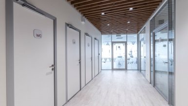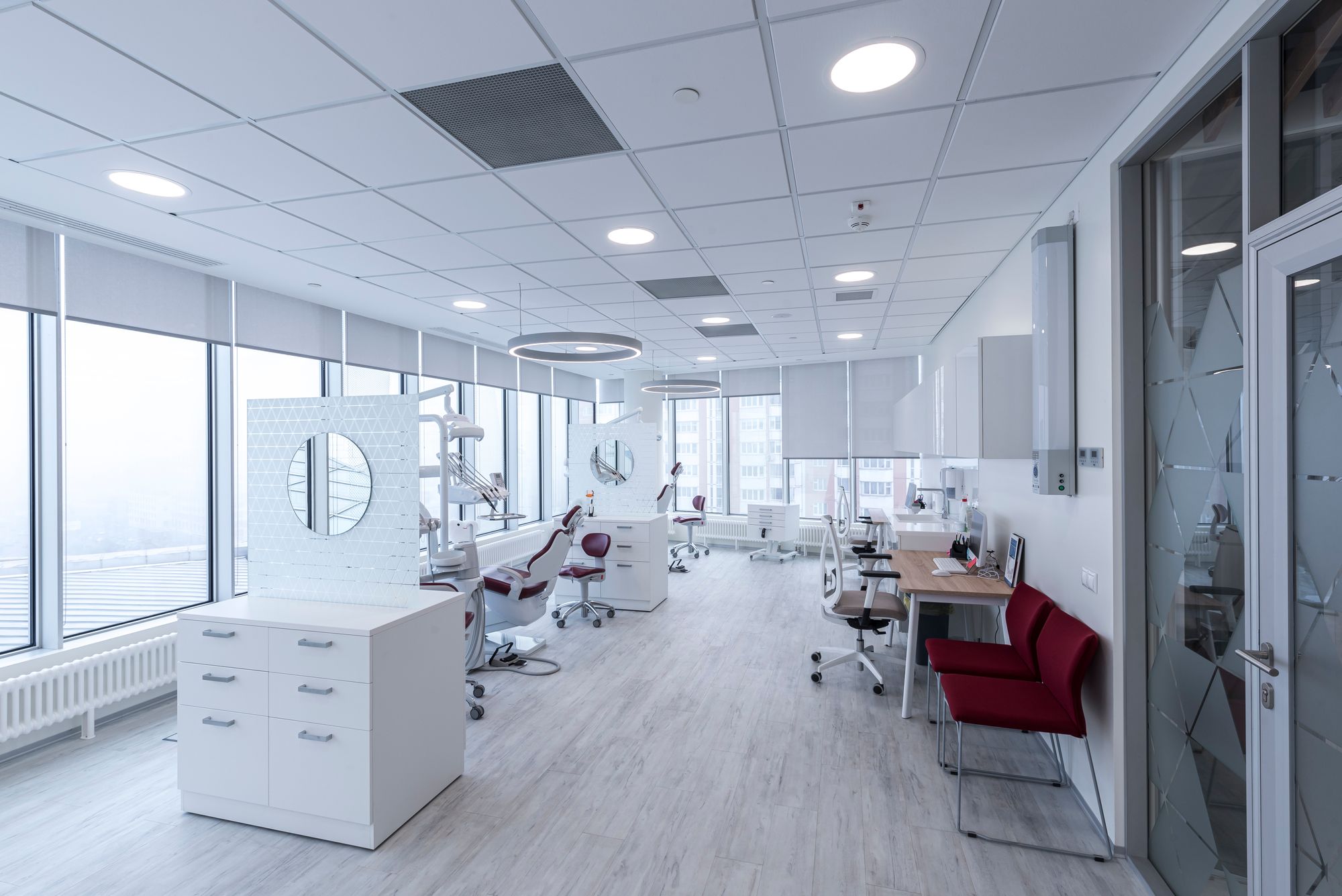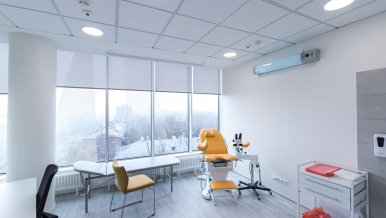 The interior of the medical center is in the classic style for such institutions: light colors, lots of light and air. All this creates a feeling of freshness, cleanliness and spaciousness.