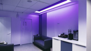 In the rest of the clinic used the classic white light color: backlighting based on LED tape, LED panels and luminaires with excellent lighting characteristics for quality lighting space in offices and corridors.