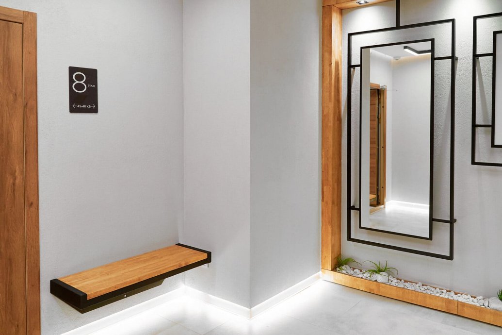 The common areas in the Ecopark residential complex are designed as if they were an extension of the apartment. Comfort, aesthetics and functionality are present here. And lighting is an integral part of the overall result.