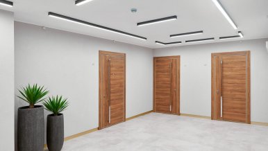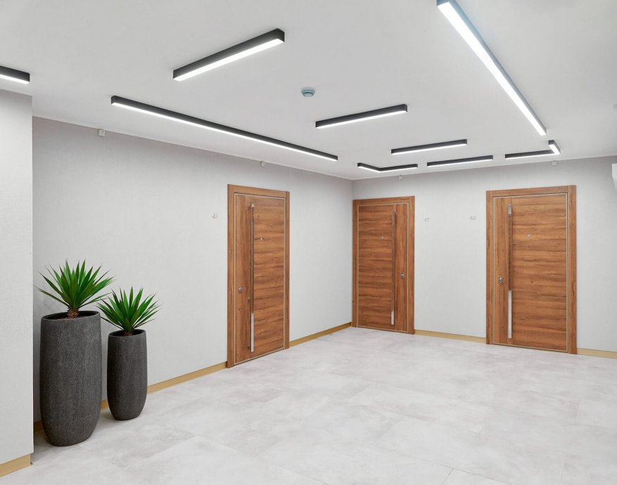 The lighting in the public areas looks natural thanks to the daylight white luminescence shade (4,000 K). The choice of color temperature of luminescence well emphasizes light tones in the interior, creating a feeling of lightness, naturalness and purity.