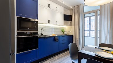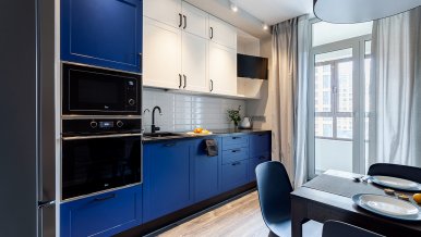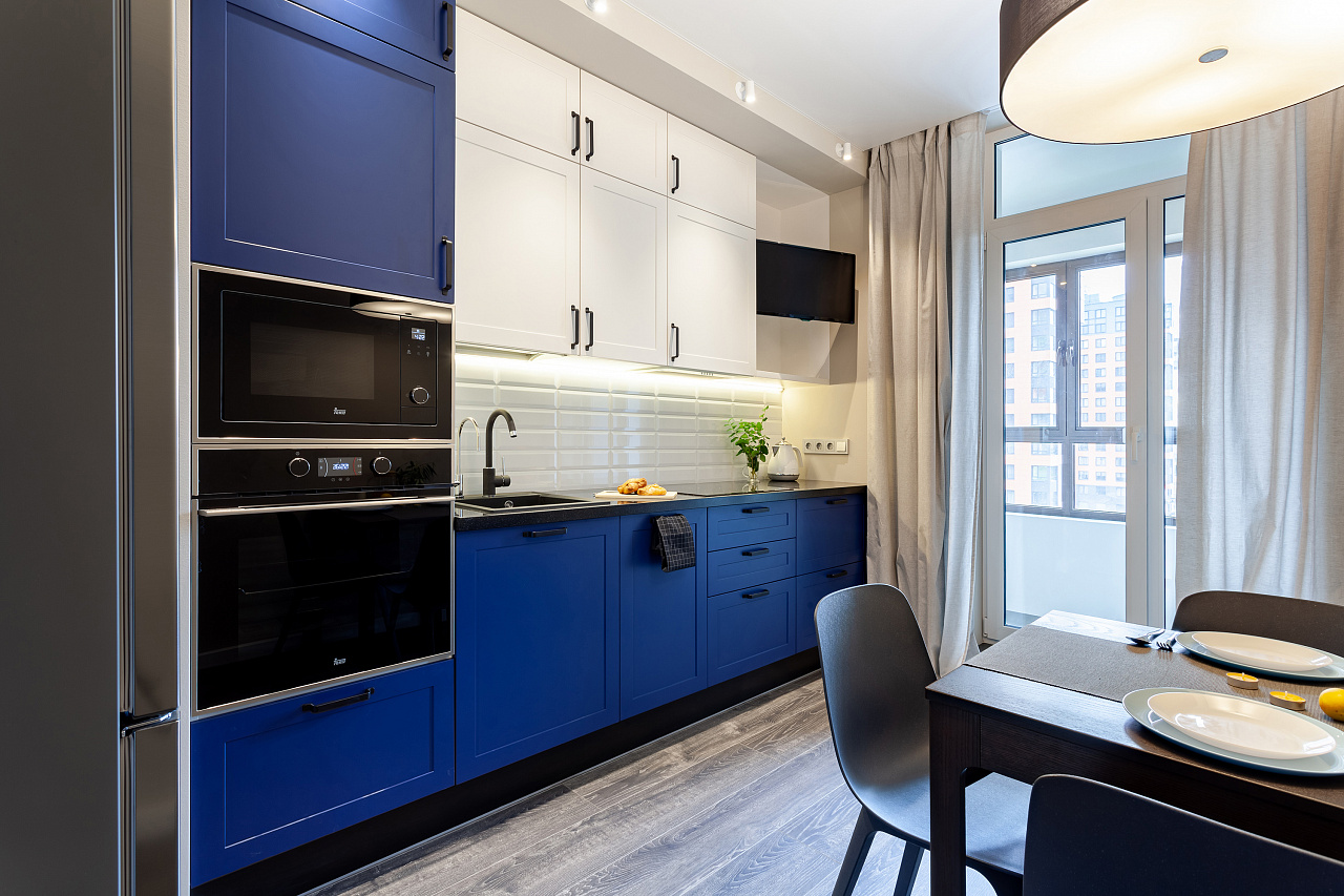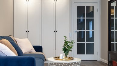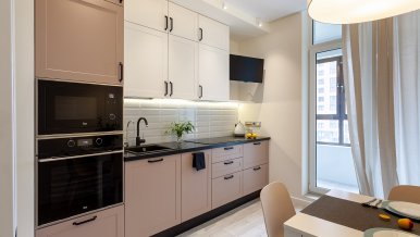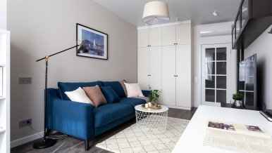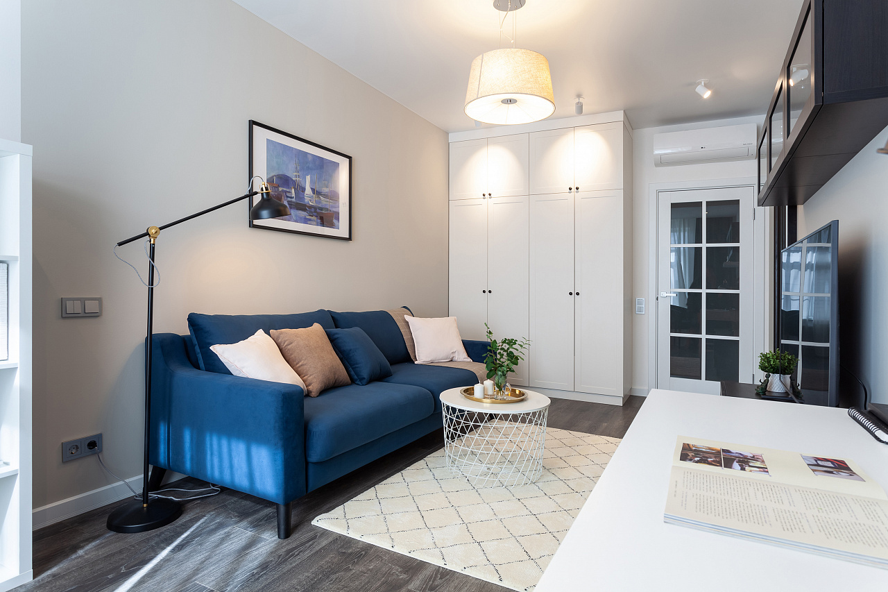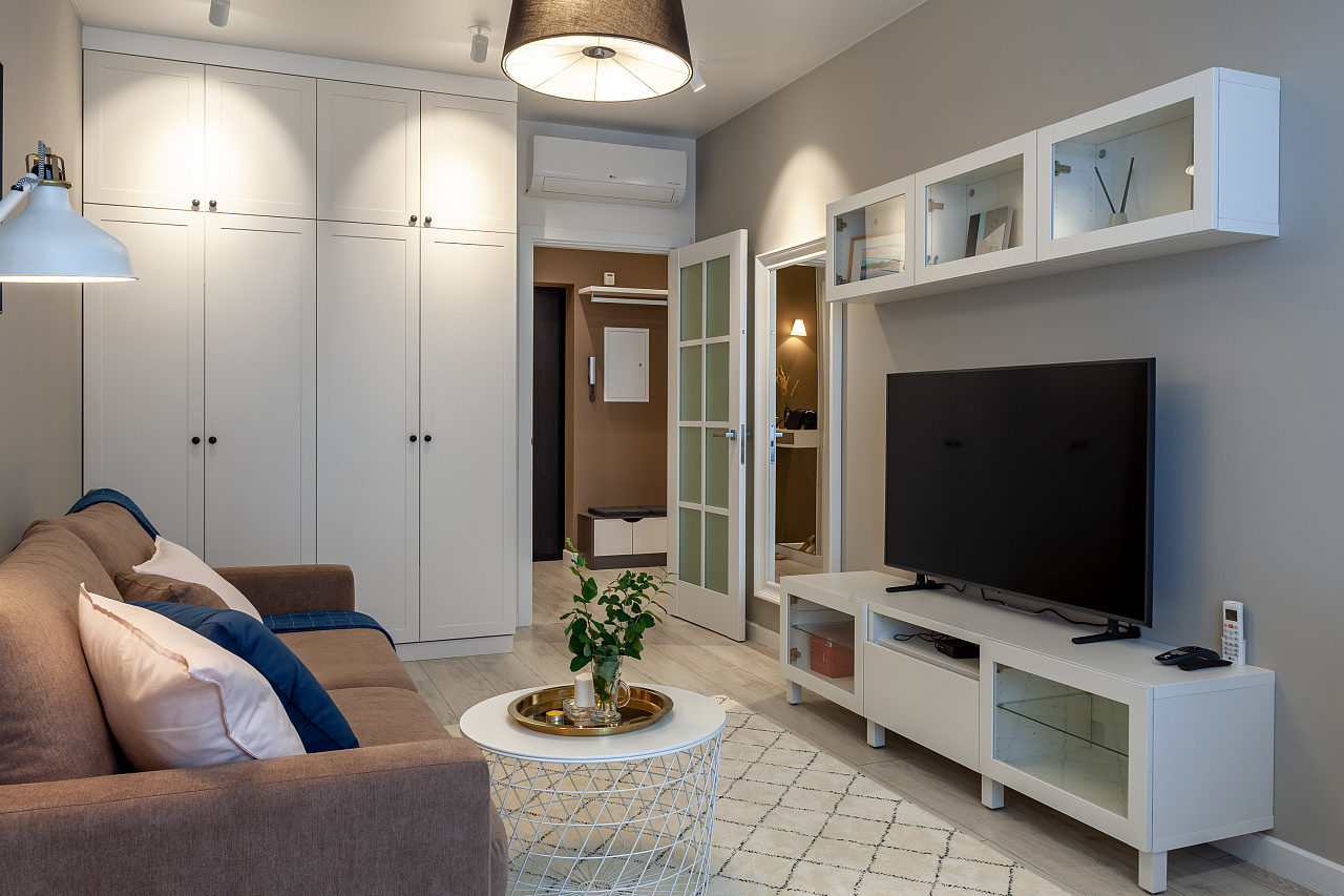 The interiors of the two apartments differ only in their color scheme. Lighting of both interiors is also arranged according to the same scheme. For the cozy living space, we have chosen lamps with warm white color of glow.