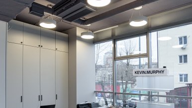 Selected LED strips of daylight white color have a high color rendering index CRI>90 and in combination with matte screens perfectly cope with the function of the main lighting.