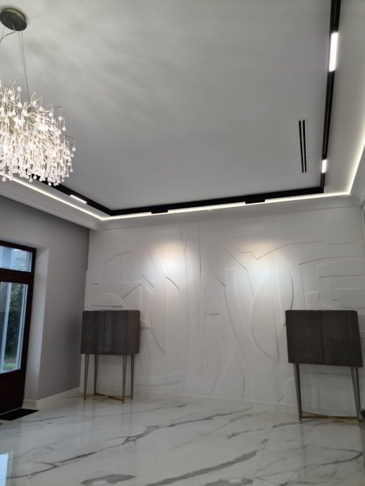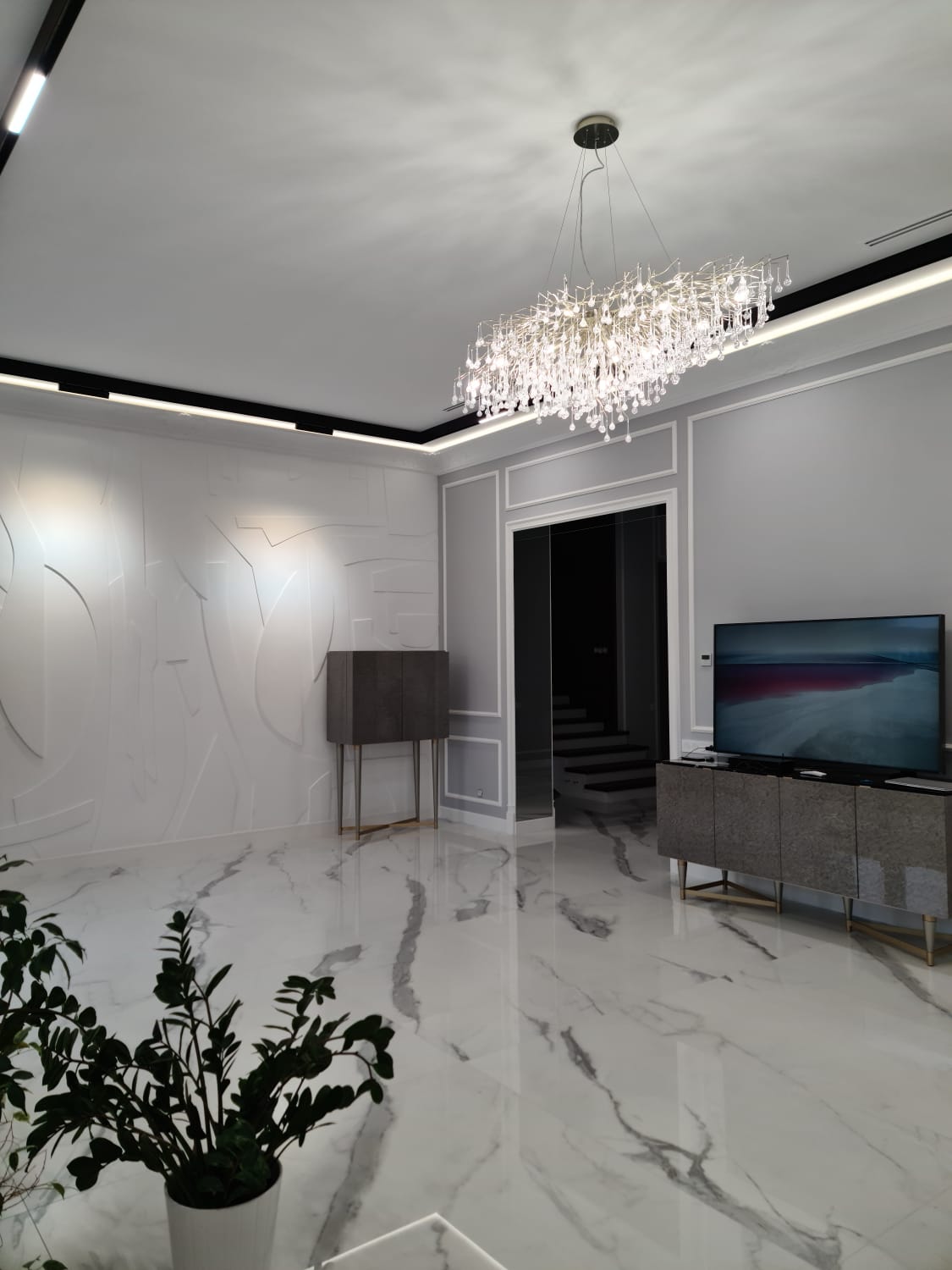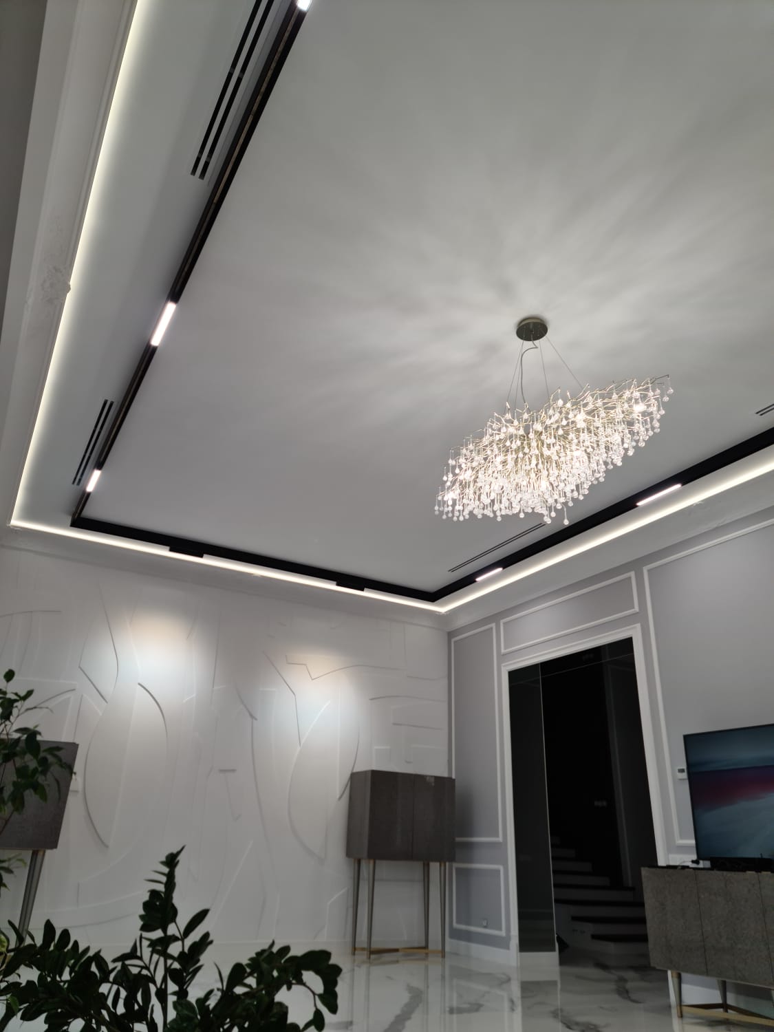 Modern, comfortable, stylish lighting that will fit into the mixed style of neoclassical and techno - the task set by the customer. Different types of lighting were realized in the project: main lighting, decorative lighting, duty lighting.