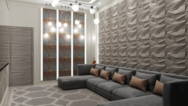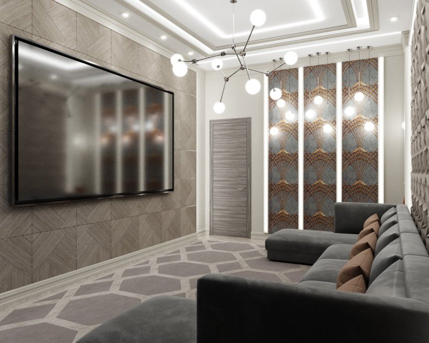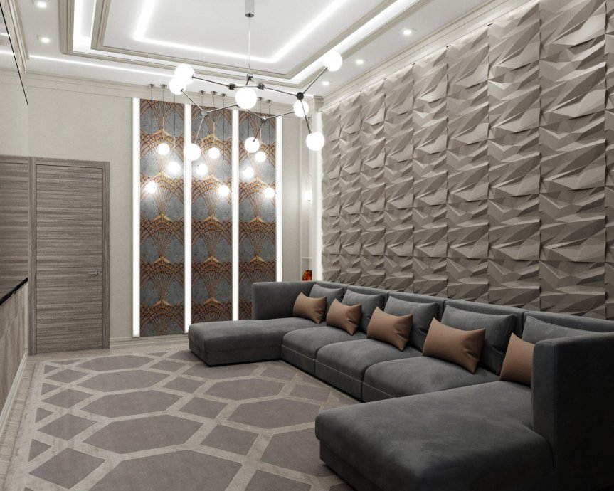 Backlighting panels in a home theater performs more of a decorative function, but can also be used as additional lighting. Therefore, it was important to be able to adjust the brightness of the light. The light is controlled by a dimmer switch, which allows you to turn the backlight on/off and smoothly change the level of illumination using a remote control or control panel.
