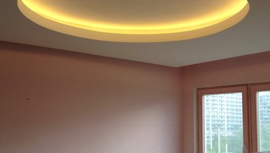 During the first renovation in this apartment as a source of decorative lighting used fluorescent lamps, because LED strips at that time just appeared on the market, were not widespread and cost quite expensive.