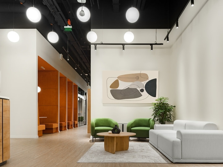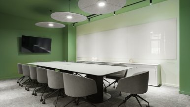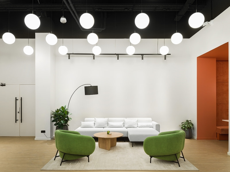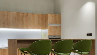 The office in BC “Lefort” was specially designed by the Space 1 team for a manufacturer of natural and ecological food products. The interior of the office reflects the direction of the customer's company through pronounced wooden elements of furniture, a combination of lush green and pure white colors, as well as an abundance of indoor plants.