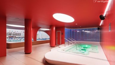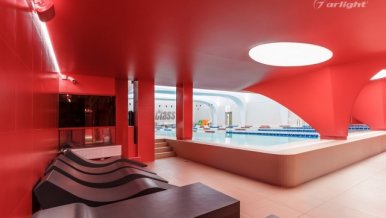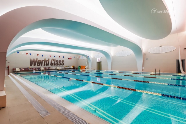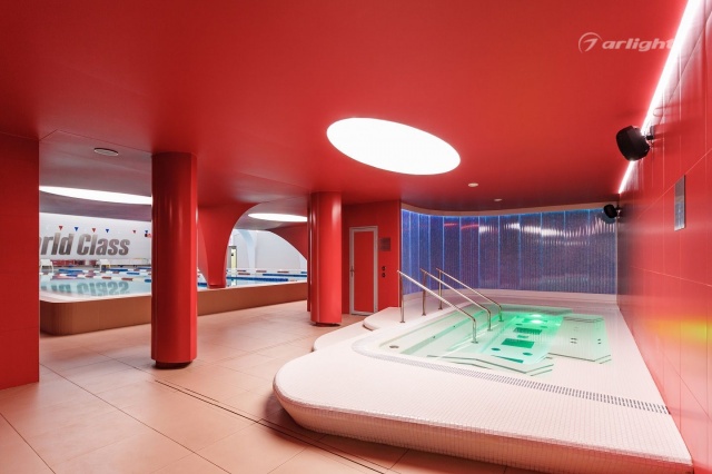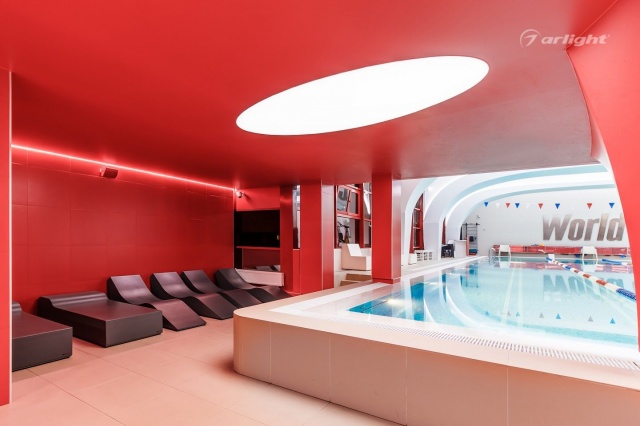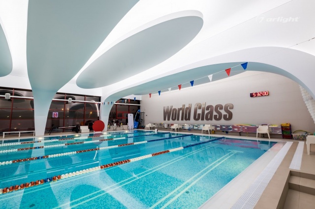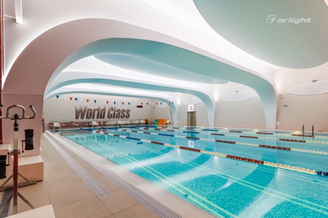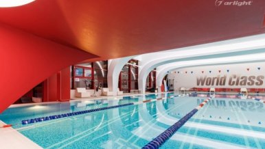 In the fitness club World Class “Olympic” with the help of LED equipment Arlight lighting of the swimming pool was made.