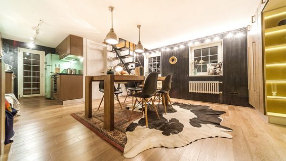 The spacious pool area in the country house required a large amount of light. The task was accomplished with multiple spotlights and light lines placed on the ceiling, walls and floor.