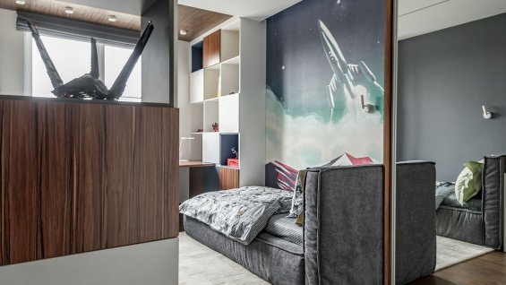 In the children's room in Residential Complex “Moscow” with a laconic interior, light lines were used for the main lighting.