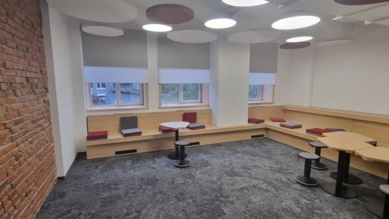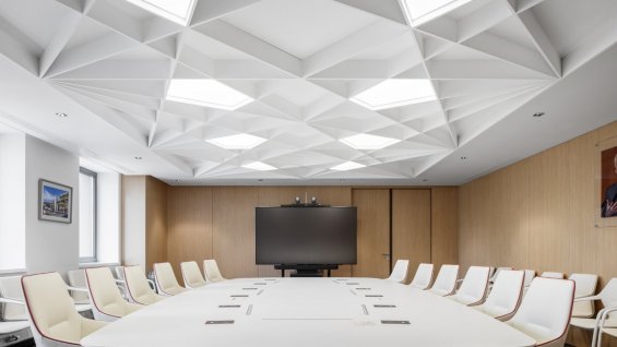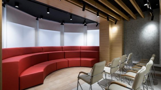 The design of the modern spacious office of LLK-International reflects the harmony of the color scheme.