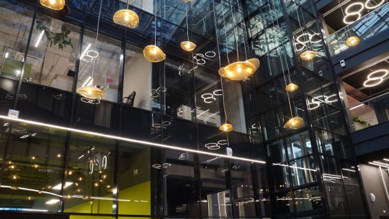 The basis of office lighting are linear LED pendant lights of various shapes and sizes