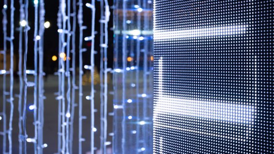 Bright colors and dynamic illumination of the greeting installation attract attention and create a festive atmosphere