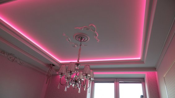 The lighting in this project is unusual for apartments. It is multi-color, multi-zone and responds to the music in the room.