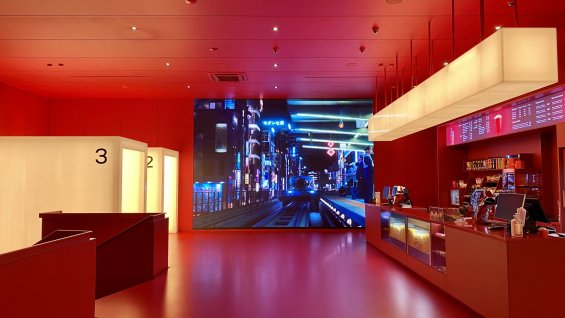 In movie theaters always create an association with semi-darkness, so lighting in such places should be unobtrusive, but at the same time atmospheric.