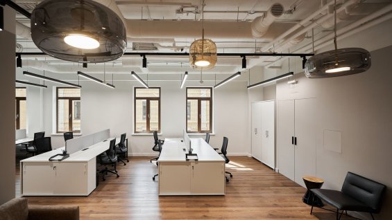 Ergonomic luminaires with high technical characteristics were chosen to provide the main lighting in the offices located on Kompozitorskaya Street.