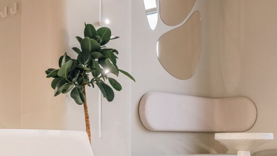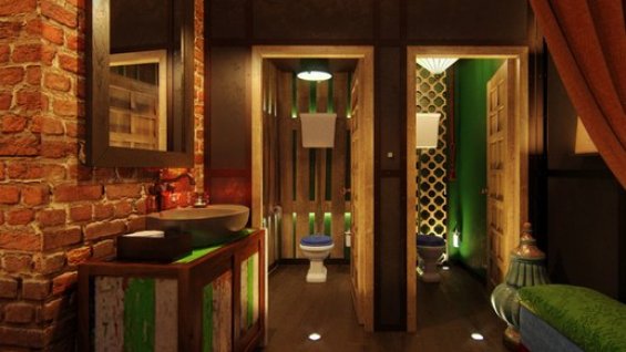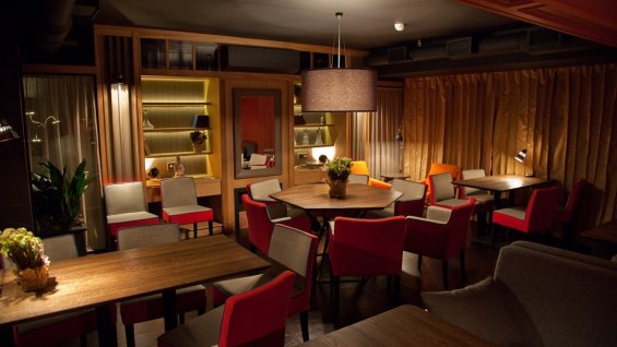 The concept of the interior of the coffee house “MONK” finds correspondence to its name.